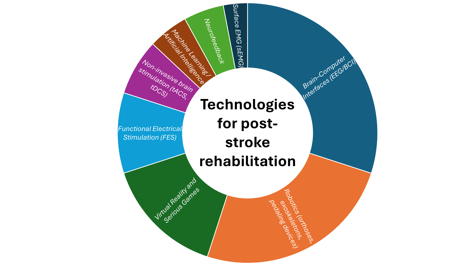Recent years have shown innovations that can transform post-stroke rehabilitation, such as the use of Robot-Assisted Training (orthoses, exoskeletons, pedaling devices), Brain Stimulation, Neuromodulation, Muscular Electrical Stimulation, Virtual Reality and Serious Games, Surface EMG (sEMG), Machine Learning / Artificial Intelligence, Neurofeedback which provides feedback and tracks progress for personalized rehabilitation [9], [10], [11] with positive outcomes in the field of rehabilitation. Fig 1 summarizes the technologies reported in the literature as emerging paradigms to support stroke survivors.