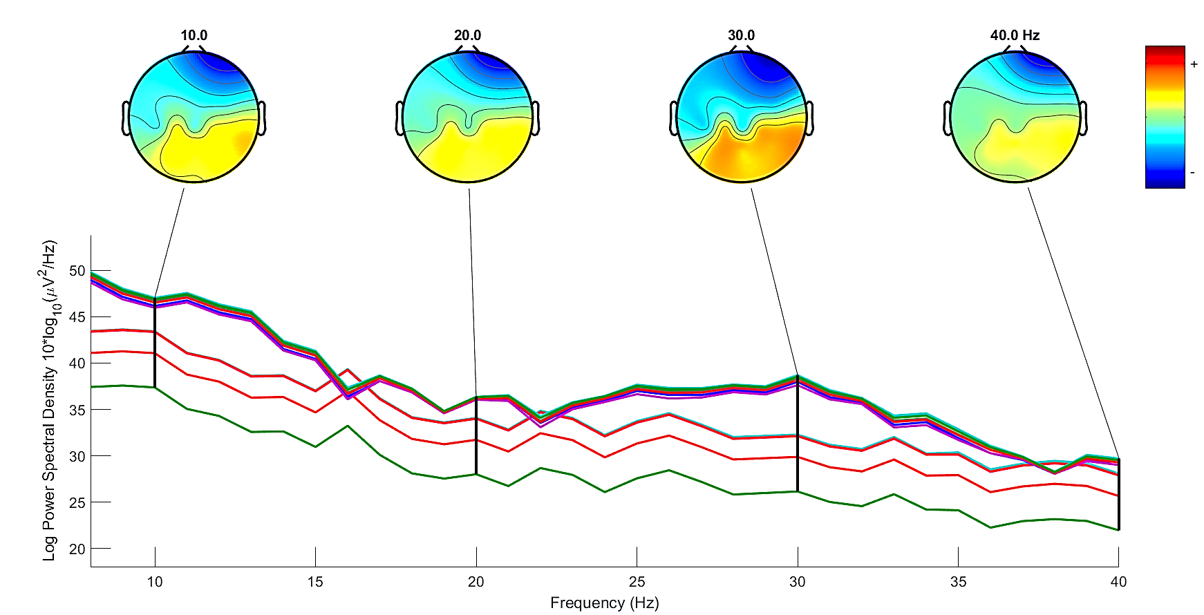 Fig 10 shows the topographic maps captured before and after the intervention, in which it is possible to see the increase of energy (red colour) at the end of intervention.