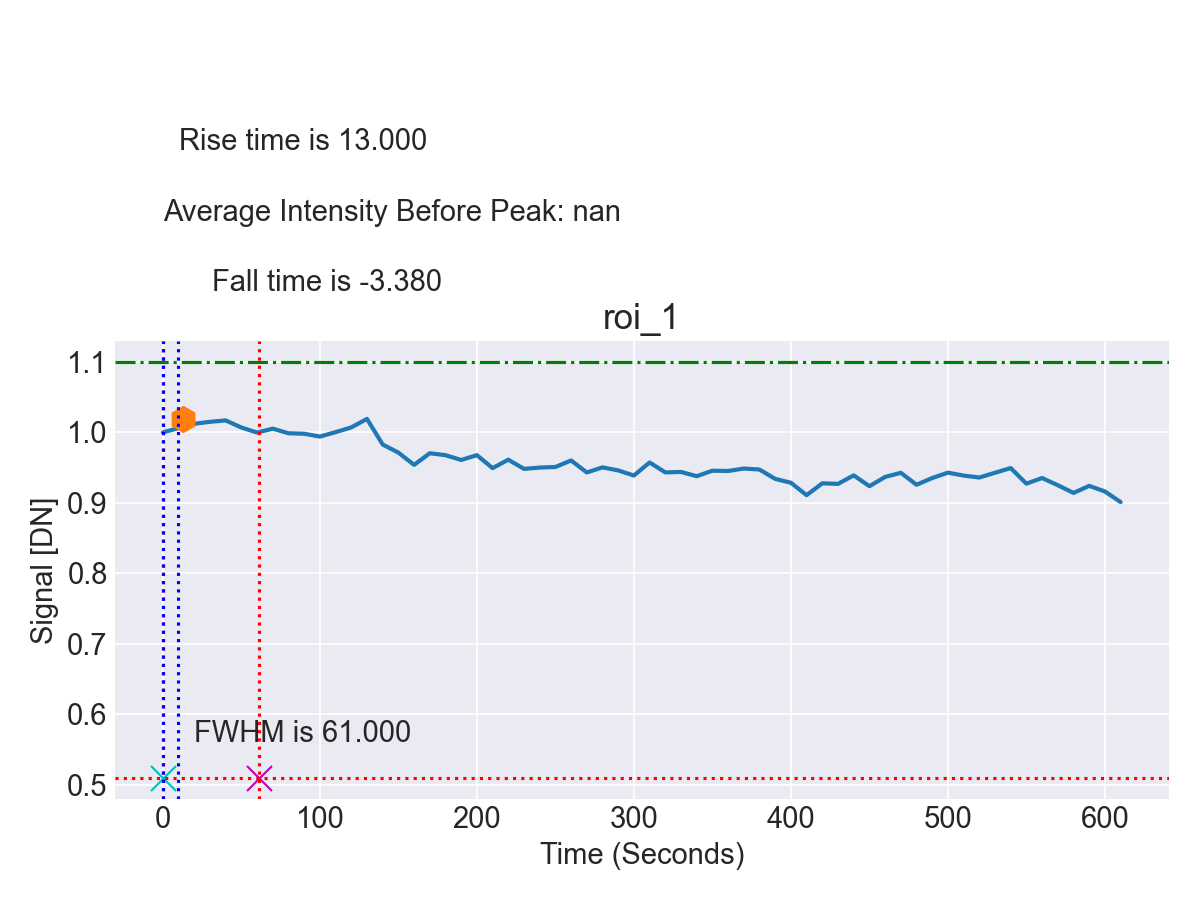 - Automated ROI (Region of Interest) Segmentation: Cells were automatically segmented from the frame containing the peak fluorescence signal. Algorithms adapted from DNA repair studies were employed to delineate each cell as an individual ROI, allowing targeted intensity tracking (Figure 7)