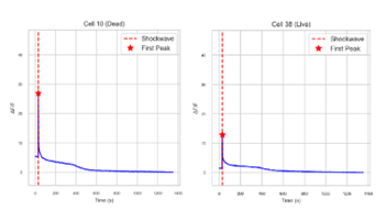 - Brightest Frame Indexing: The image series was scanned to identify the frame with the highest overall fluorescence intensity, which marked the initiation of the shockwave effect (Figure 6).