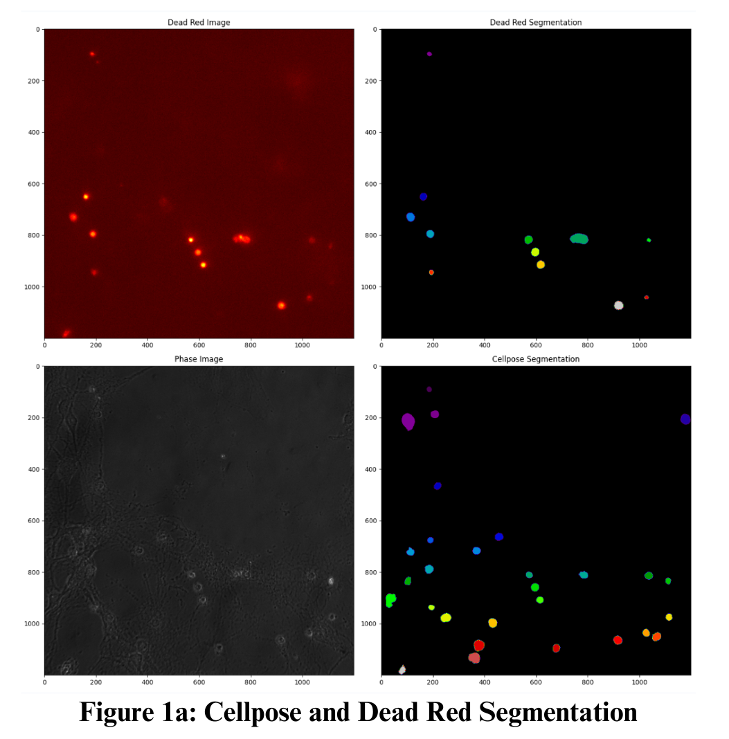 The automated workflow successfully processed multi-channel datasets to segment live and dead neurons and quantify their calcium responses after LIS stimulation. As shown in Figure 13, Cellpose segmentation combined with the Dead Red channel enabled accurate differentiation between viable and non-viable cells, eliminating the need for manual cell-by-cell annotation.