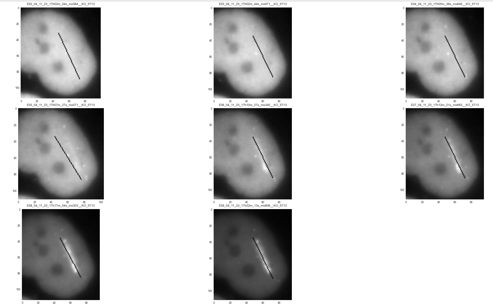 - Batch Image Loading: Sequential fluorescence images capturing the recruitment of repair proteins were loaded for processing. These time-lapse datasets represented the dynamic behavior of protein of interest at the sites of laser-induced DNA double-strand breaks as shown in Figure 1