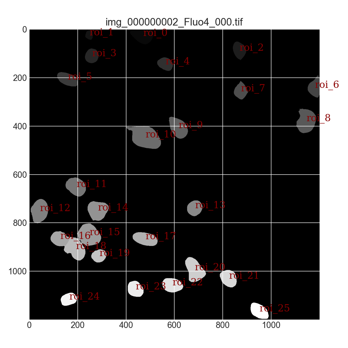- Temporal Tracking of Cellular Response: Fluorescence intensity for each segmented ROI was measured and recorded across all frames, capturing the temporal evolution of calcium responses at the single-cell level.