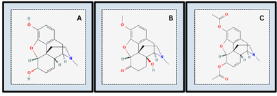Opioids are a class of natural, semi-synthetic, and synthetic drugs, such as heroin, oxycodone, methadone, morphine, and fentanyl (Figure 1), which are defined as medications that bind to opioid receptors [6]. In signaling pathways, opioid receptors function as painkillers, inhibiting the transmission of pain neurotransmitters and inducing analgesia [2]. However, the involvement of opioids in long-term treatment plans has become increasingly controversial. As these medications have become more accessible in pain treatment, opioid addiction and abuse have become more frequent. The surge in opioid usage can partially be attributed to commercial marketing strategies to physicians who prescribe these products.