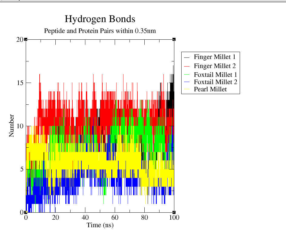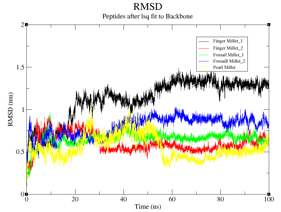 The three-dimensional (3D) structures of the bioactive peptides collected from Finger Millet, Foxtail Millet, and Pearl Millet were predicted using the I-TASSER [10] webserver. The model with the highest C-score regardless of its rank was selected for downstream molecular docking and simulation studies.