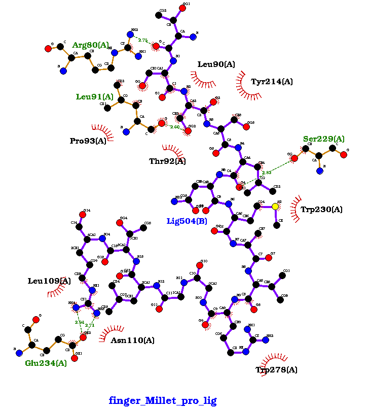 Fig 3 (a): Arg80, Leu90, Tyr214, Leu91, Tyr214, Pro93, Ther92, Ser229, Trp230, Trp278l, Asn110, Leu109.