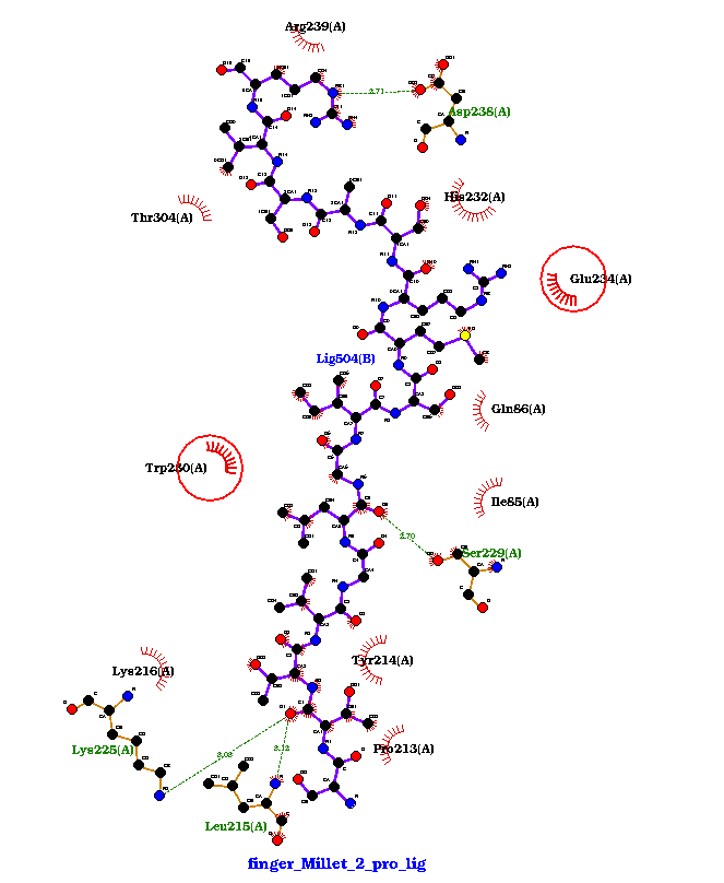 Fig 3 (b): Arg239, Thr304, Asp238, His232, Glu234, Trp280, Gln86, Ile85, Ser229, Tyr214, Pro213, Leu215, Lys225, Lys216